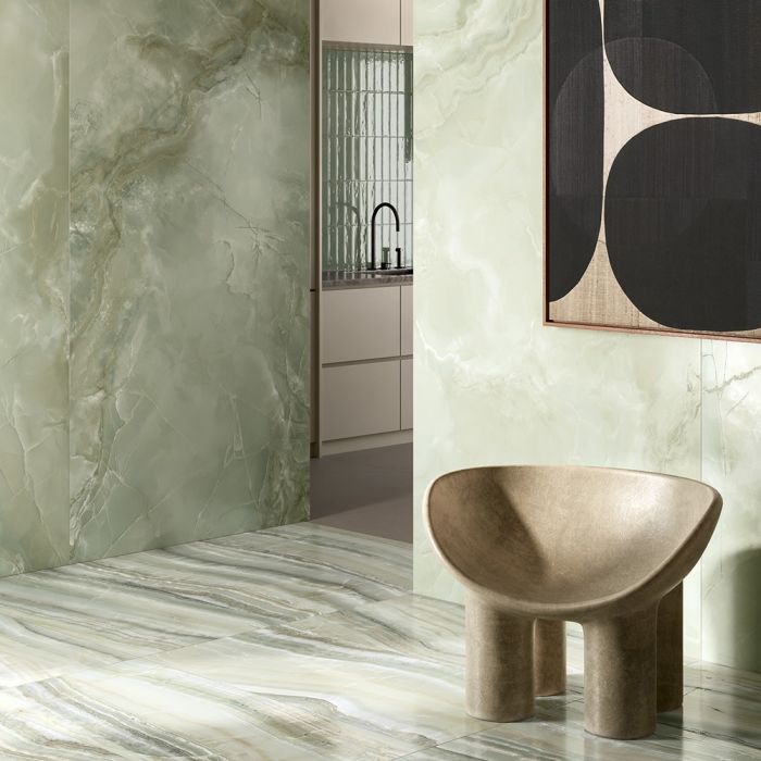 A premium tile from our Aura collection, featuring a refined Green tone in a versatile 47x110 format. Crafted from durable Porcelain, this tile showcases a Matte finish with the elegant character of Marble, Stone.