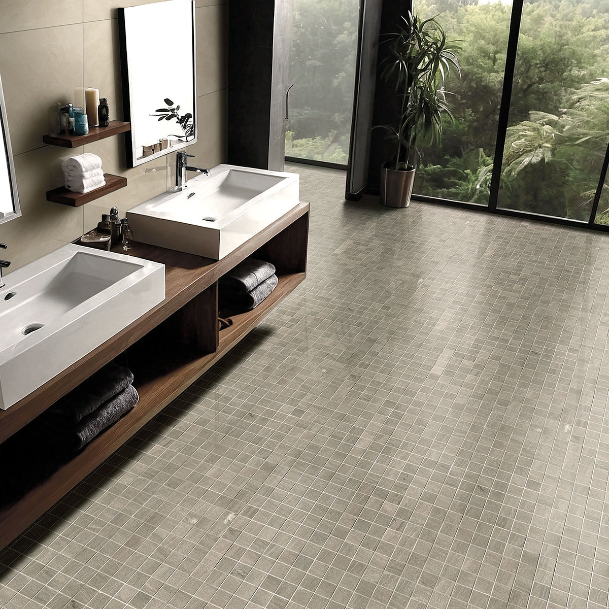 A premium tile from our Malahari collection, featuring a refined Gray tone in a versatile 2x2 Mosaic format. Crafted from durable Porcelain, this tile showcases a Lappato finish with the elegant character of Mosaic.